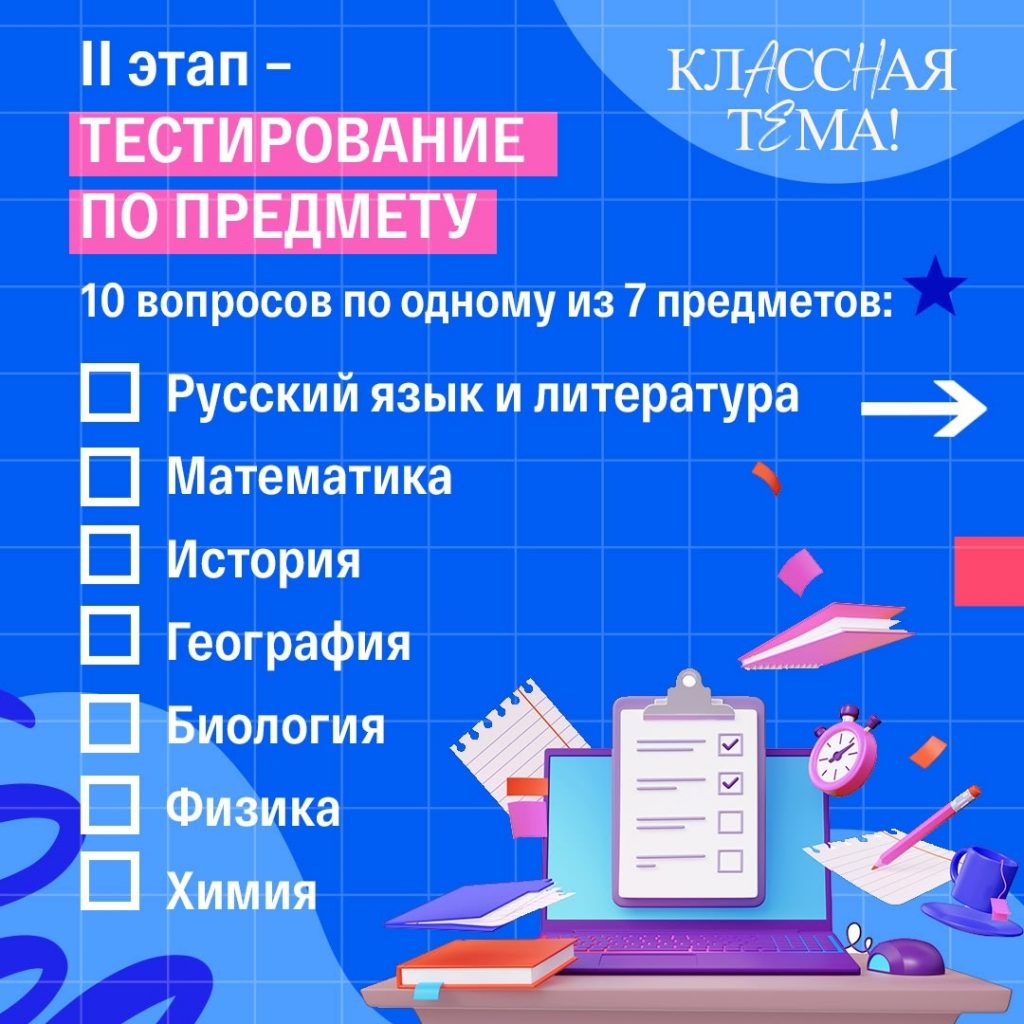 – тестирование по выбранному предмету (занимает около 30 минут),