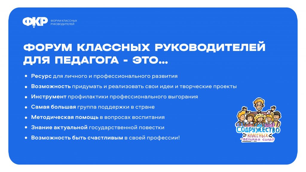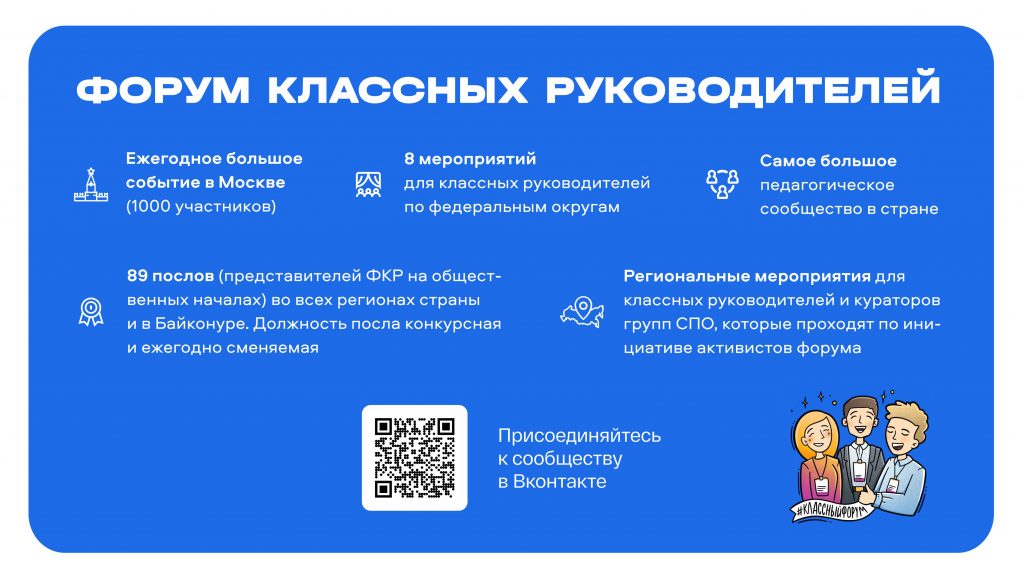 Форум станет площадкой для обмена опытом и обсуждения актуальных вопросов педагогики, который пройдет с 1 по 3 октября 2025 года. К участию приглашаются как классные руководители общеобразовательных организаций, так и кураторы учебных групп образовательных организаций, реализующих программы среднего профессионального образования.