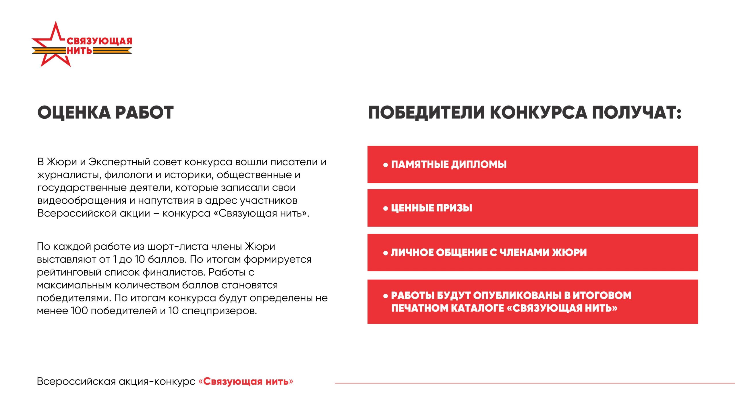 Приглашаем вас принять участие во Всероссийской акции – конкурсе «Связующая нить» – ежегодном историко-патриотическом проекте, где мы сами пишем историю России.